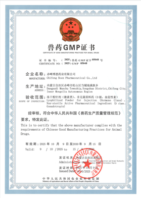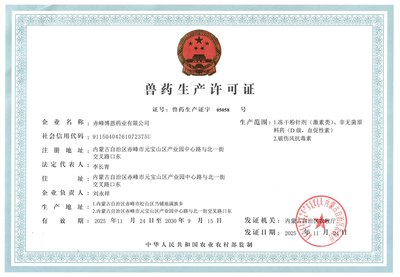 赤峰博恩药业有限公司成立于2004年,公司注册资本3500万元。原地址为赤峰市商贸物流城;已于2023年2月整体入驻赤峰高新技术产业开发区元宝山产业园(中心路与北一街交叉路口东);是一家以生物、化学制药为主体的高新技术企业。主要生产以破伤风抗毒素抗体血清与孕马血清促性腺激素为主的动物繁殖用药系列产品,现有生产线全部通过了国家兽药“GMP”认证,标准化实验动物室通过了内蒙古自治区科学技术厅评审认定,取得了《实验动物使用许可证》。